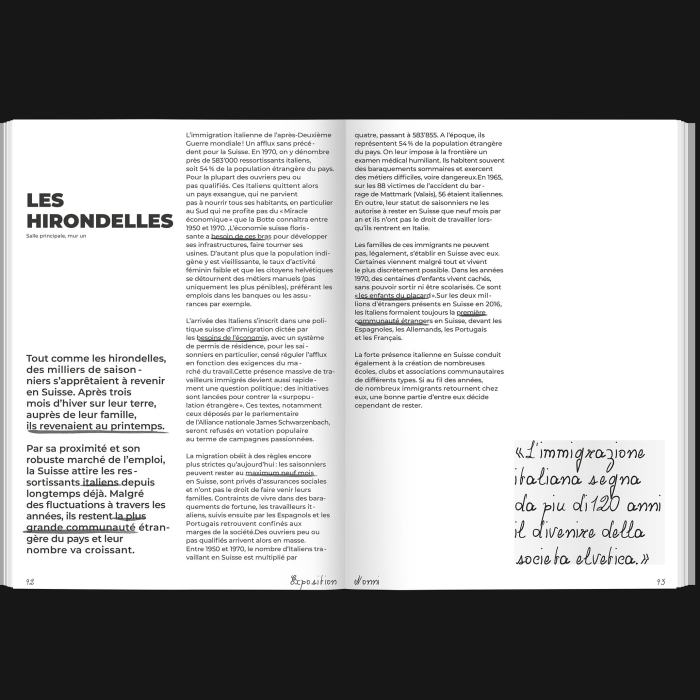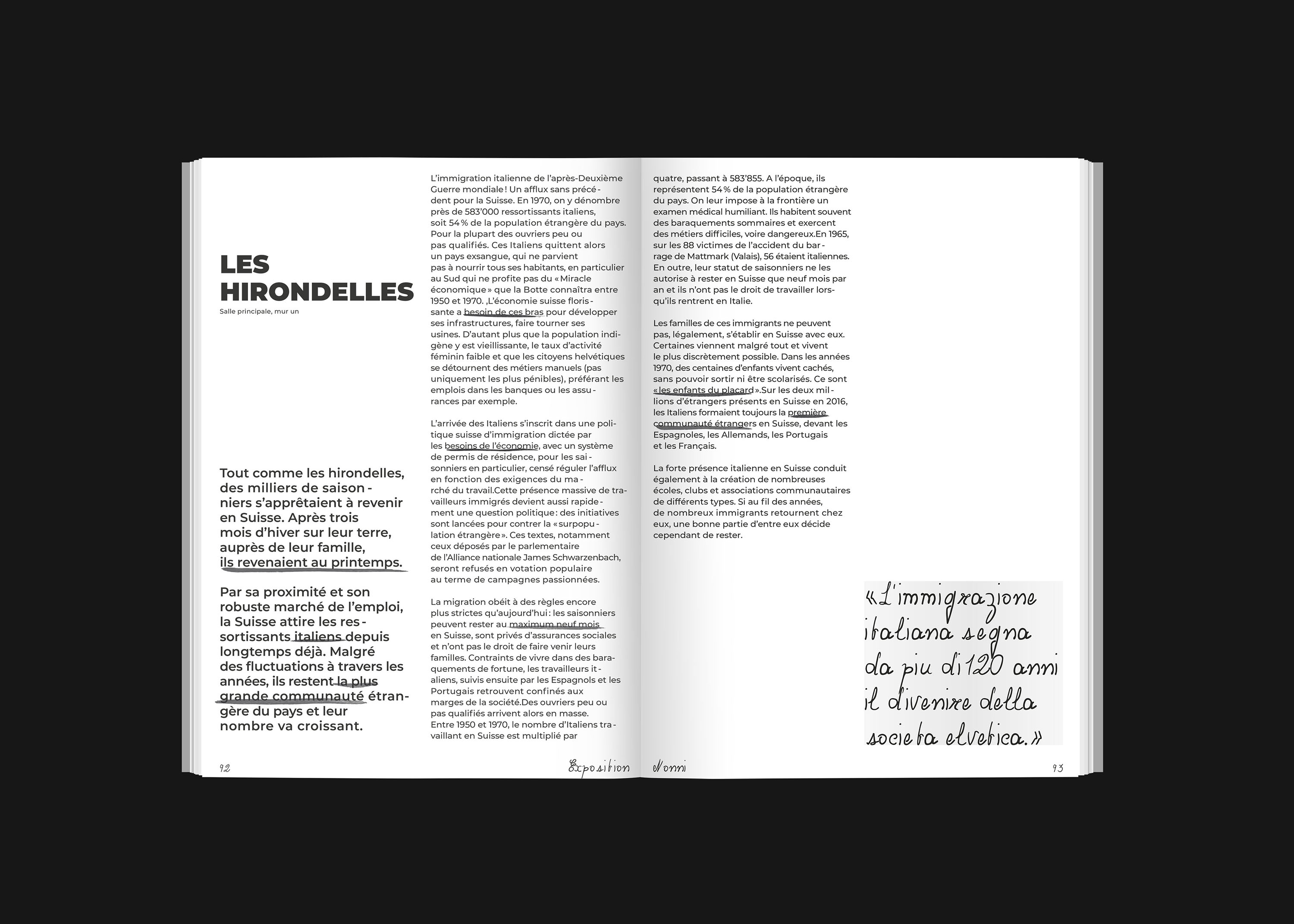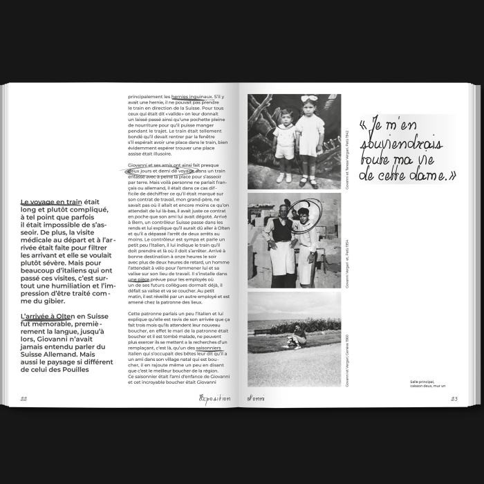 L’exposition Nonni (grands-parents en italien), nous plonge dans les coulisses de la grande vague d’immigration italienne qu’a connue la Suisse au milieu du vingtième siècle. A travers des anecdotes, récits et autres archives, l’exposition retrace le parcours de mes grands-parents et met en lumière une partie souvent méconnue de l’histoire suisse. Cette exposition rend également hommage à mes grands-parents et indirectement aux immigrés italiens en Suisse.